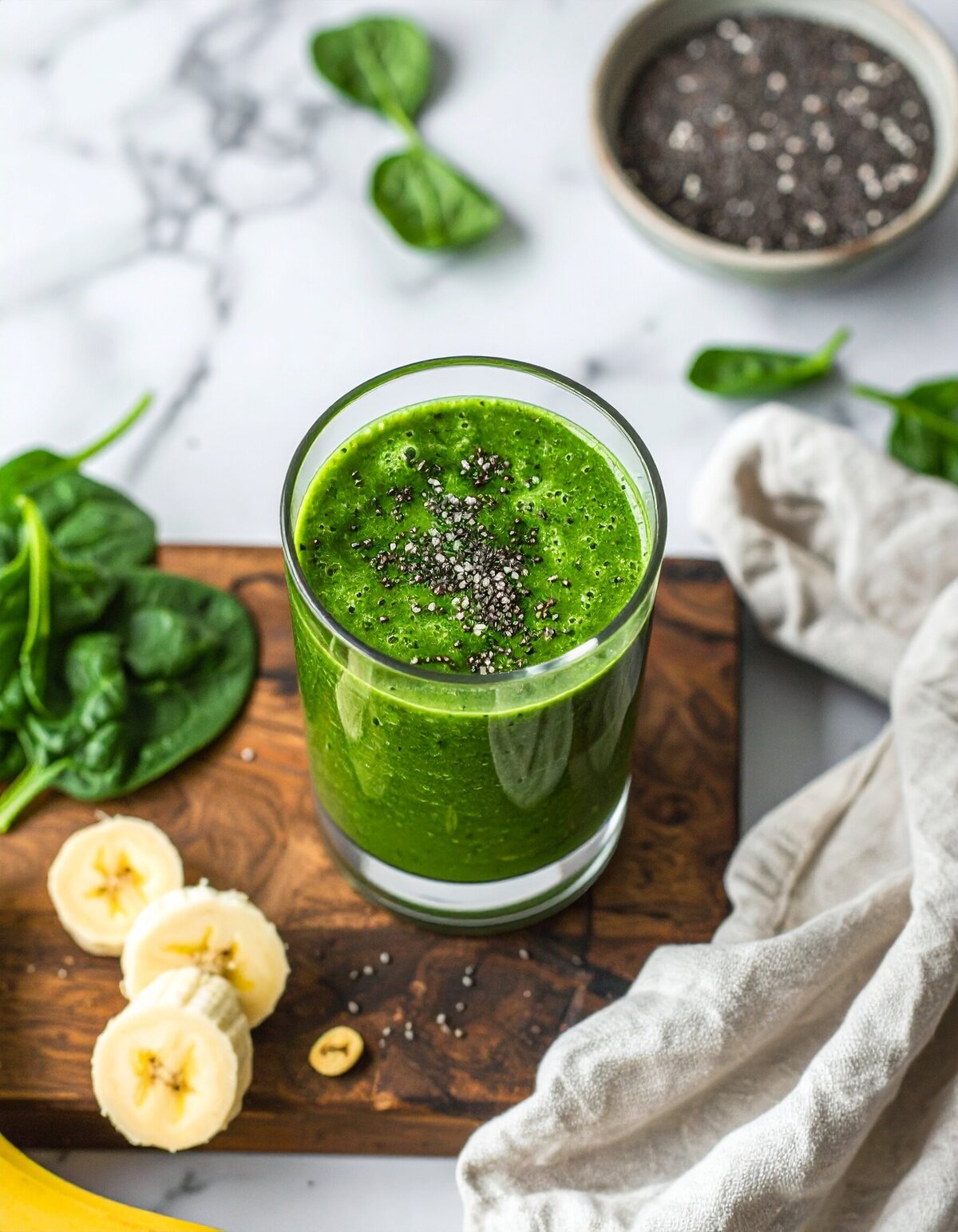 Add the greens and liquids first: Start by adding the spinach (or kale) and almond milk to your blender. Toss in the fruit: Add the frozen banana, mango (or pineapple), and avocado. Boost with chia seeds: Add in the chia seeds for fiber and texture. Sweeten to taste: If you want a little extra sweetness, drizzle in some honey or maple syrup. Blend away: Add a few ice cubes if you prefer a colder smoothie, and blend everything until smooth and creamy. Serve and enjoy: Pour into a glass, take a sip, and feel your energy surge!